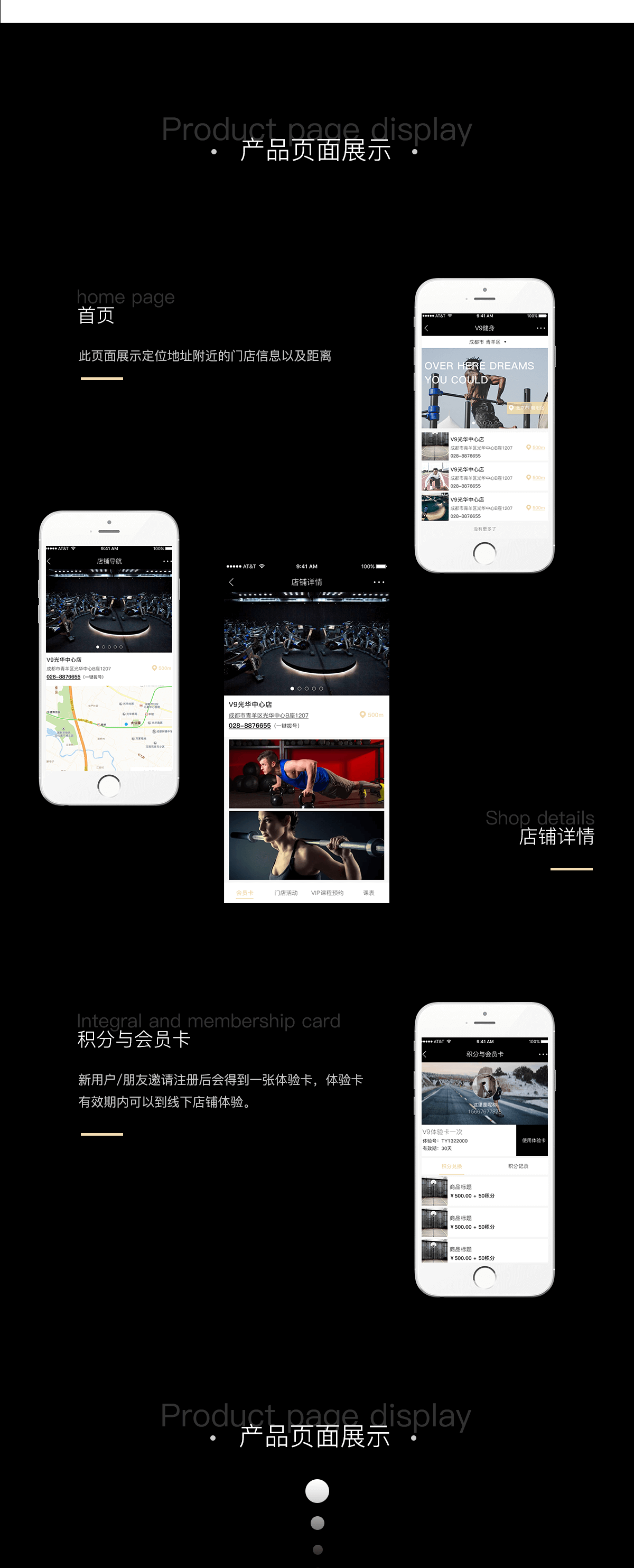 本产品核心作用激活已有的线下会员,同时发展新的用户, 让用户去邀请朋友,并能获得免得的体验卡,到门店消费,从而达到引流的作用。同时可以在线上办理会员卡、购买vip课程。
