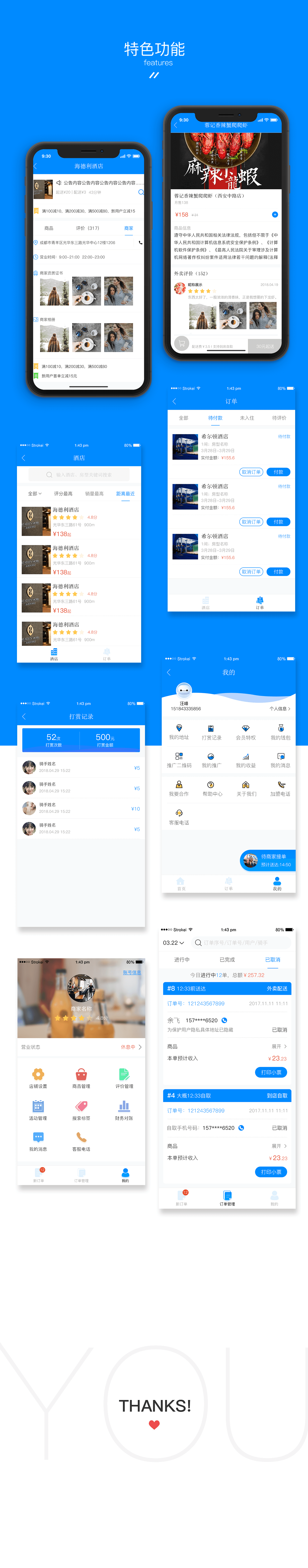 用户端:用户下外卖、团购、酒店、KTV订单