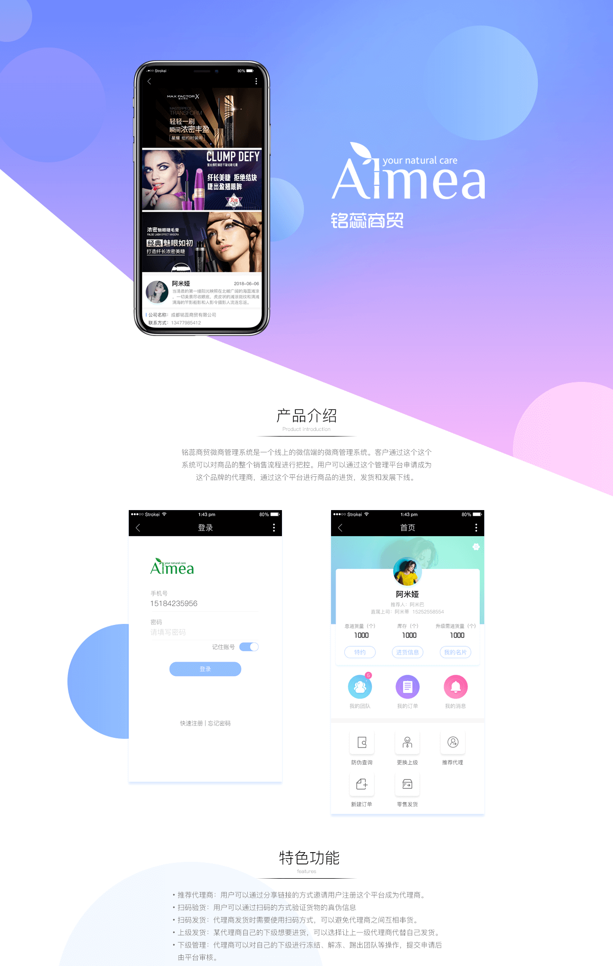 成都商贸微商管理系统是一个线上的微信端的微商管理系统。客户通过这个系统可以对商品的整个销售流程进行把控。用户可以通过这个管理平台申请成为这个品牌的代理商,通过这个平台进行商品的进货,发货和发展下线。